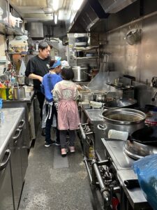 包茶は毎年、中華の調理器具やドリンカーの説明、開店準備、お客様のお迎えや配膳をお手伝いしてもらいます。お客様も温かく迎えてくださり、感謝です。我々も輝いた目をした元気いっぱいの子供に沢山のパワーをもらえます!